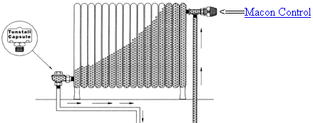 | The above illustrates a properly functioning steam trap, with a Tunstall Steam Trap Capsule® installed, which holds the steam in the radiator to maximize its energy with no steam loss. | |